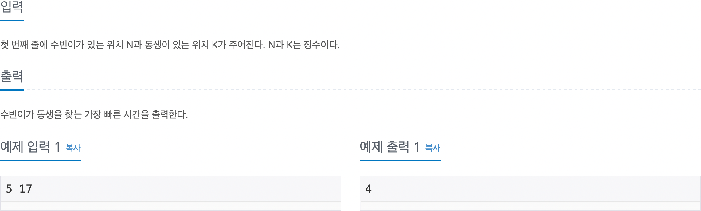 visit[] 배열을 사용해 방문 여부를 체크하고, N에서 시작해 큐에 넣습니다. 큐에서 하나씩 꺼내어 +1, -1, *2를 시도하며, K에 도달하면 바로 탐색을 종료하고 그때까지의 횟수를 출력합니다. 각 레벨마다 큐의 크기만큼 반복문을 돌며 가능한 모든 위치로 이동합니다. K에 도달하면 그때까지의 이동 횟수를 반환합니다.