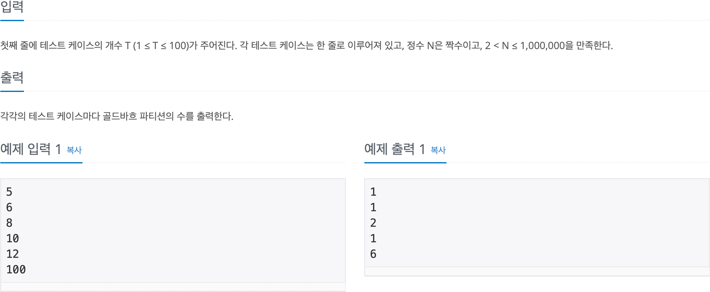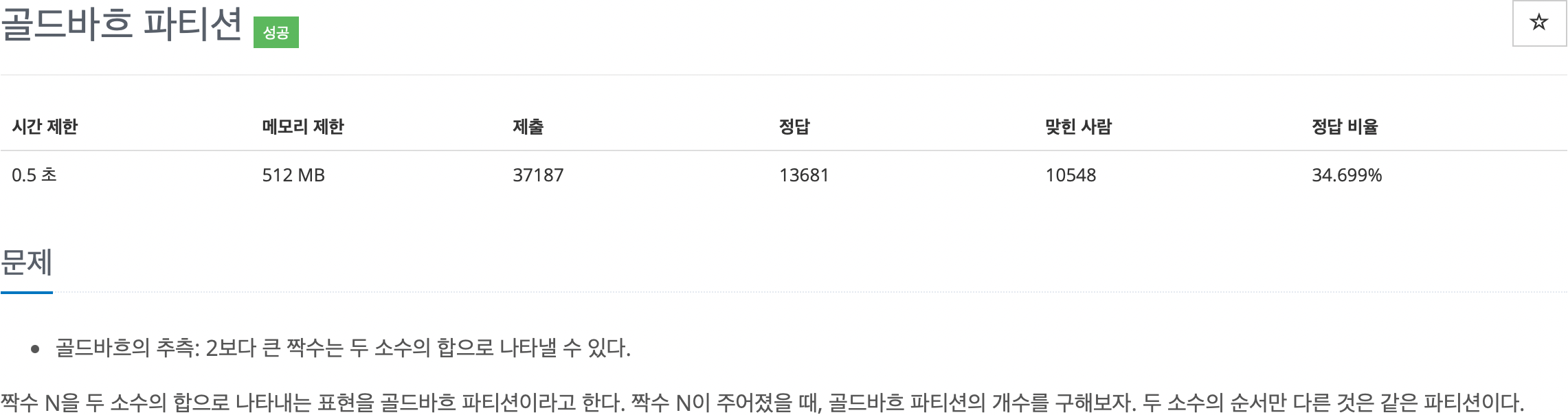 즉, 골드바흐 파티션이 되는 수를 찾는 것입니다.