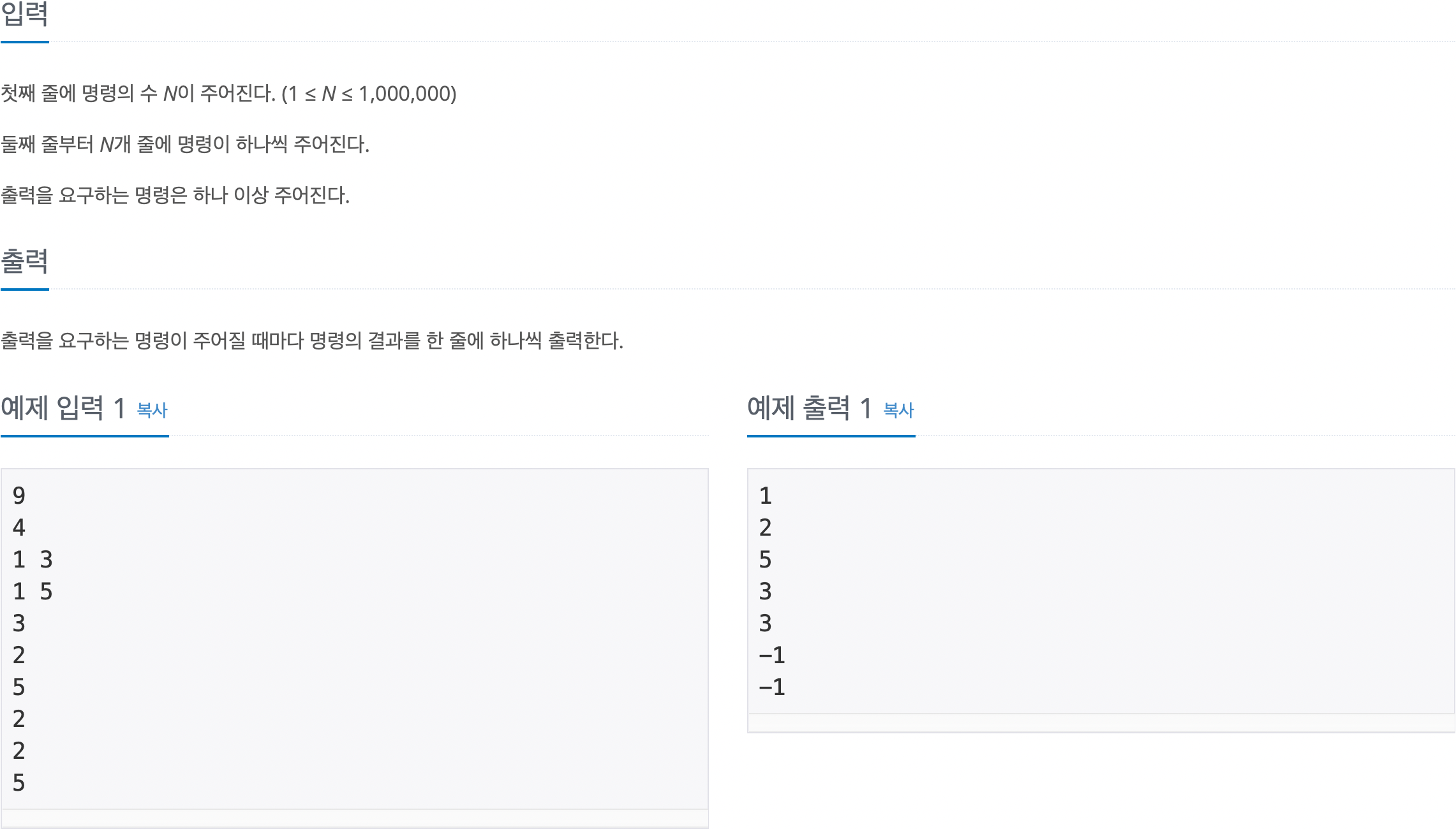문제 그대로 자료구조 중 스택(Stack)을 구현하는 코드를 작성하면 됩니다.