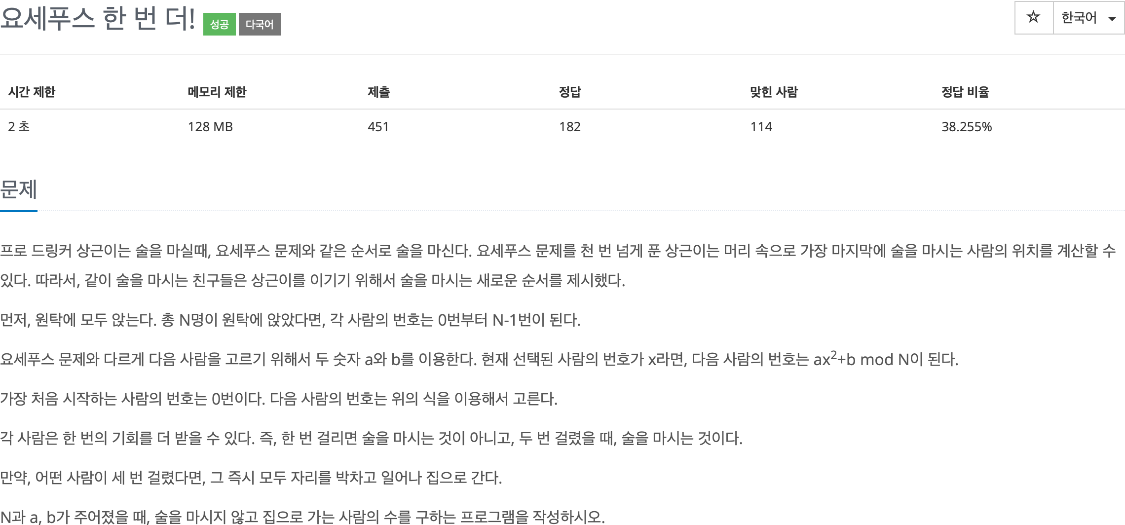 처음 이 문제를 접했을 때, 시작점(x = 0)에서 시작하여 수식 번호선택규칙(ax^2 + b mod N)에 맞추어 값을 계산해 나갔습니다.