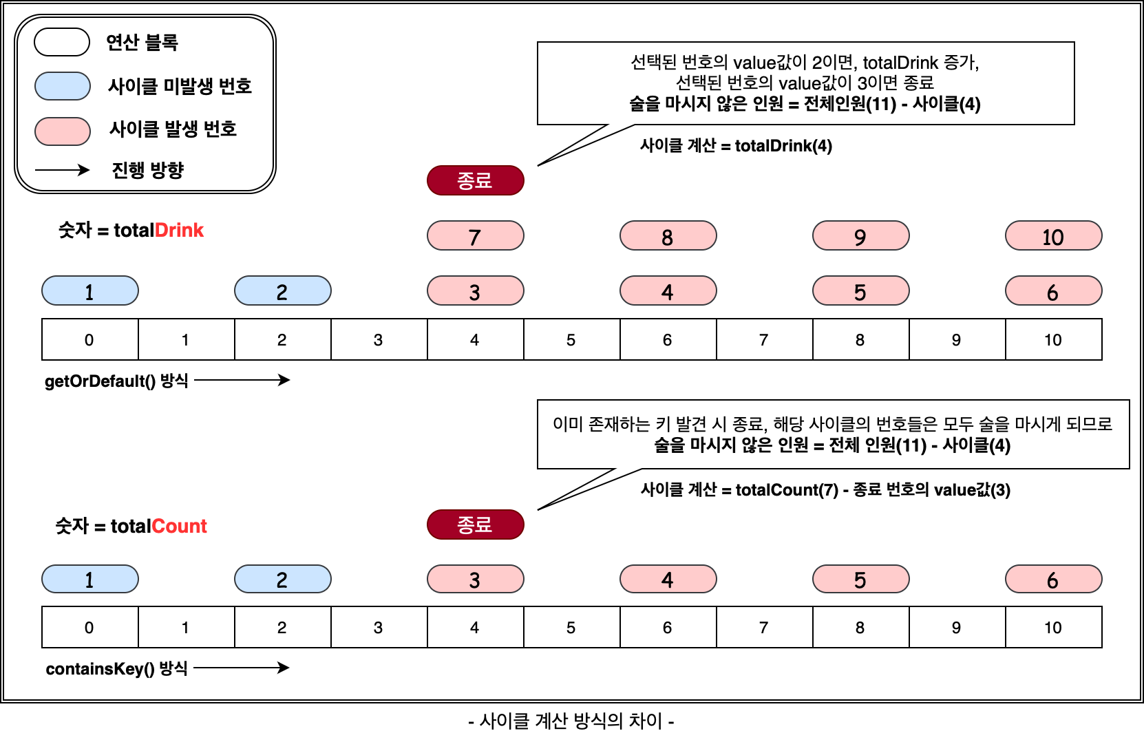 - value가 2가 된 경우 총 술을 마신 사람의 수인 totalCount를 증가시켰습니다.