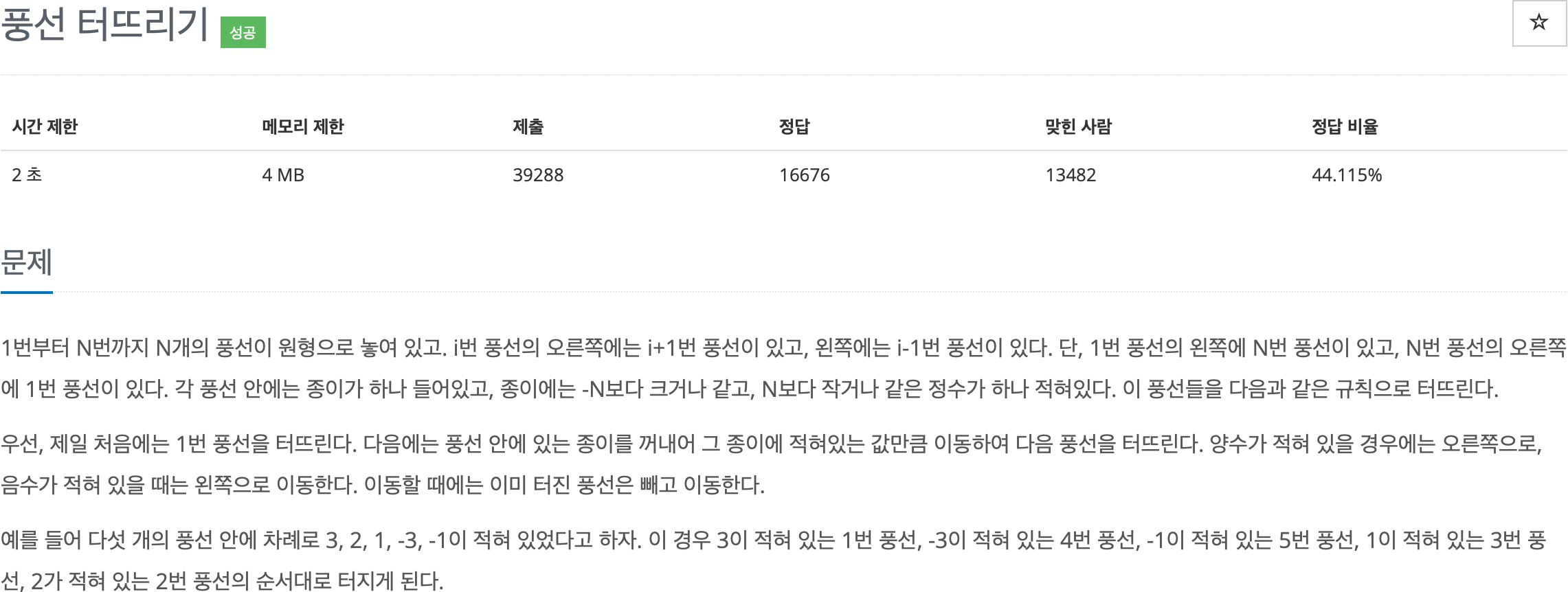 해당 문제는 풍선에 적혀있는 숫자만큼 다음 풍선으로 이동하기 때문에,